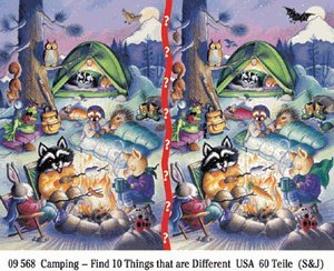 A fun and challenging Puzzle depicting a camping scene with forest animals. The same scene is portrayed on right and left with 10 differences between them. Read more...