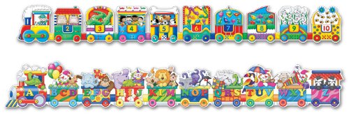 Two five feet long, 30 piece colorful cargo train puzzles: one teaching color, counting and number recognition and one teaching the alphabet. Read more...