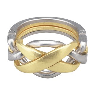 Take it apart and put it back to its original ring shape, that is the objective of this beautifully metal puzzle. A word from the designer: "This puzzle is based on an original called the 'Puzzle Ring'. Popularized in 15th century Europe, this ring style was actually used for official engagement and marriage rings. Christian reformist, Martin Luther, was even known to wear one. It is rumored to prove as evidence of its wearer's adultery...when it comes apart into pieces. That's quite a history contained in this little puzzle." Original Designer -NOB 2000 Read more...